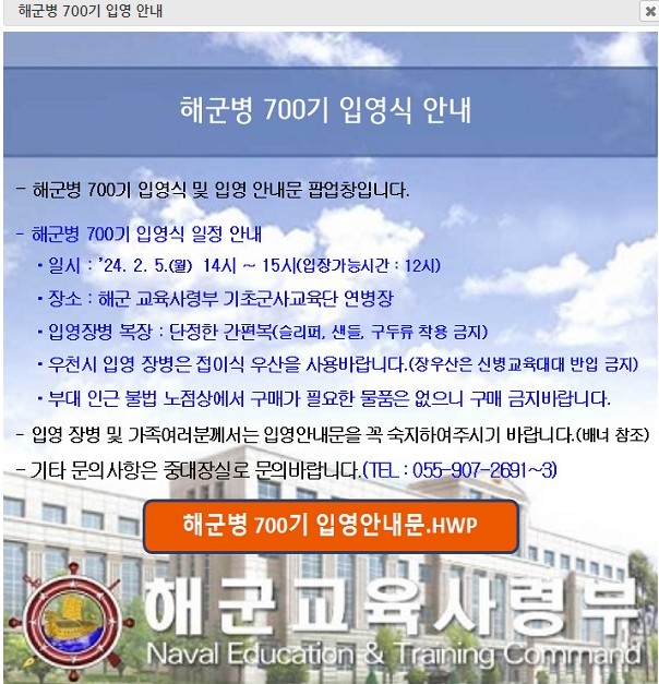 해군 일정에 확인 후
