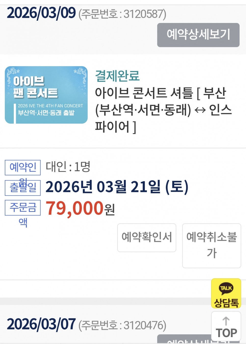 예약번호 3120587은 예약 3120476은 취소 입니다.