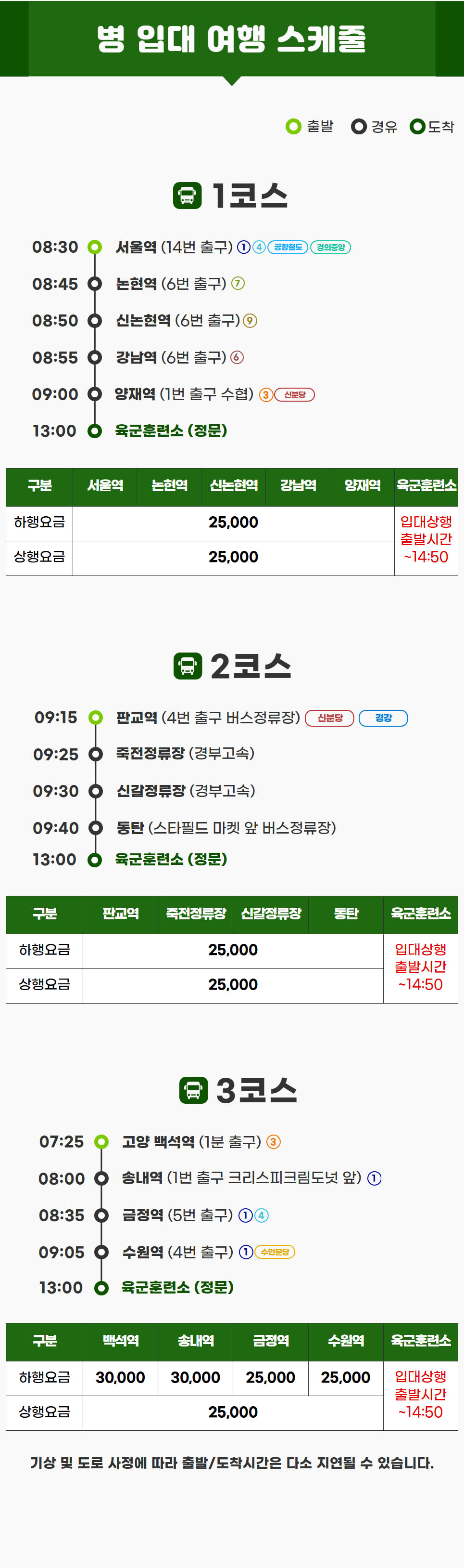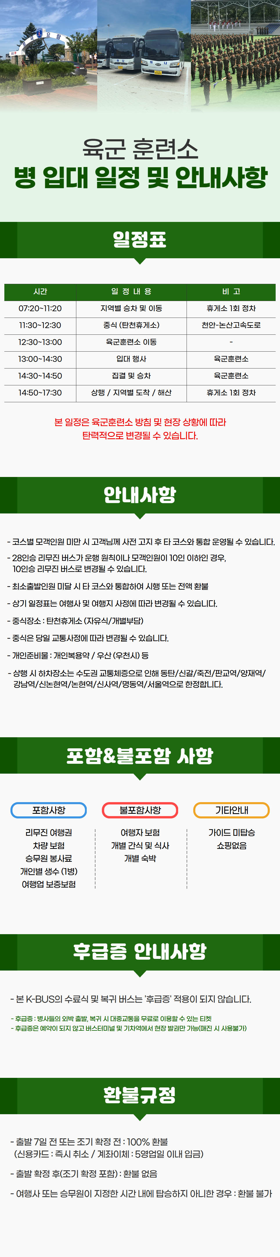 [육군훈련소] 현역 병 입대 버스(매주 월)