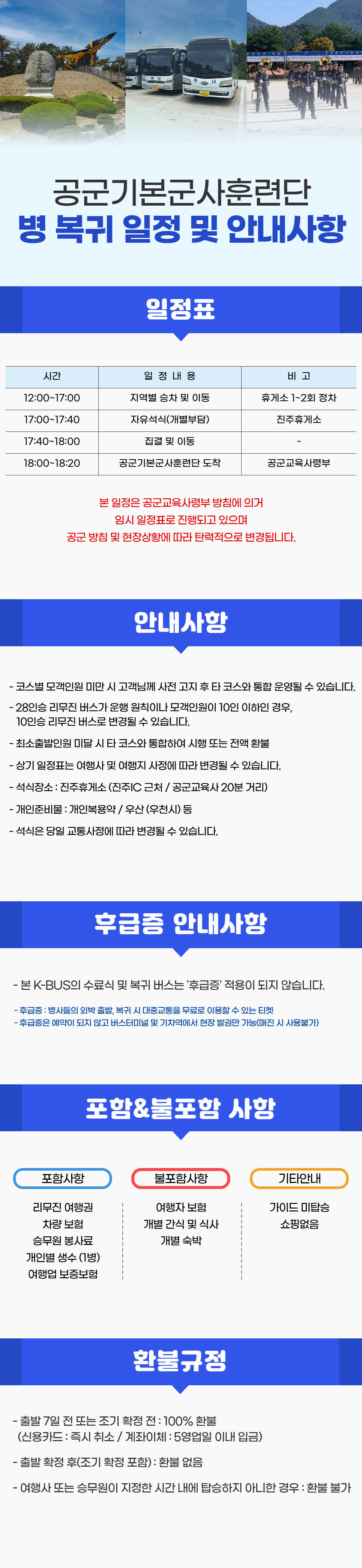 ■석식시간 부여(진주휴게소) ■공군교육사령부 제 1, 2 정문 모두 하차 가능