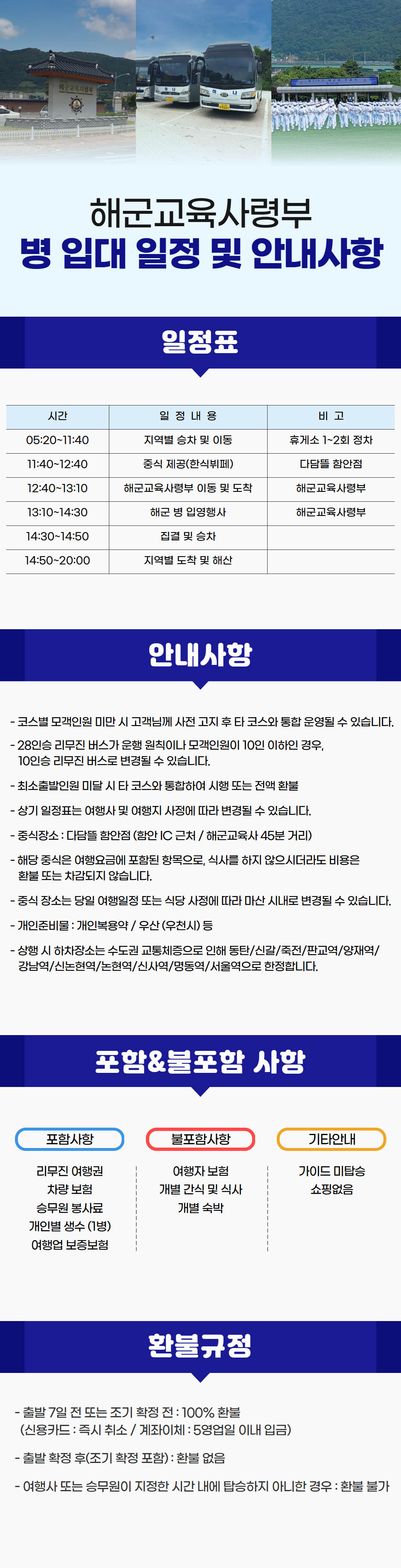 ■프리미엄 한식뷔페(중식) 제공 ■해군교육사 방침에 따라 일정 변동 될 수 있음(상세일정 참조 )