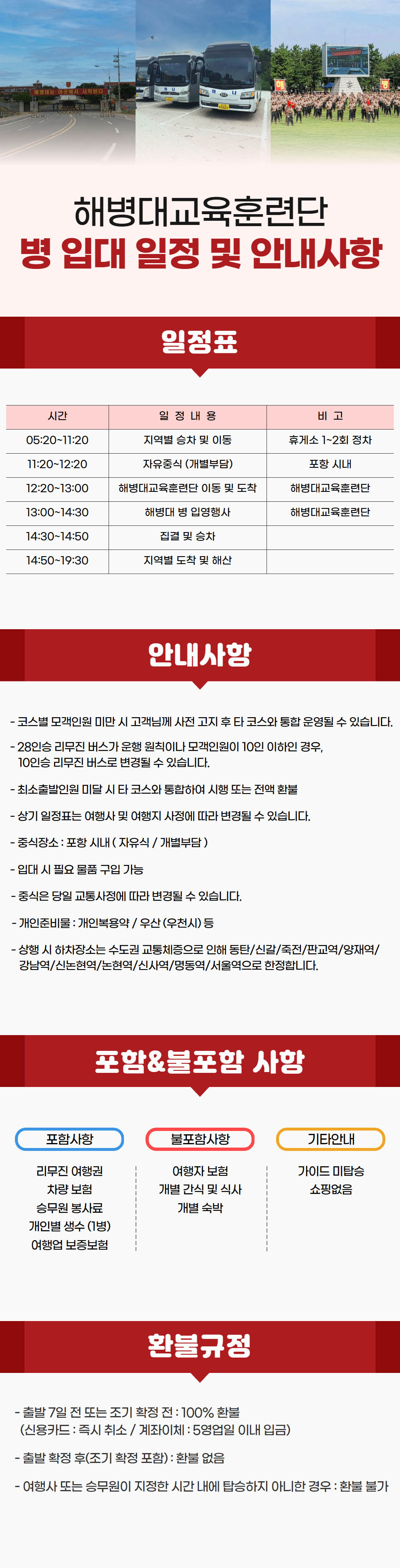 ■해병대 방침에 따라 출발시간이 조정 될 수 있음 ■상세일정 하단참조 ■입대용품 판매개시(군 규정품)