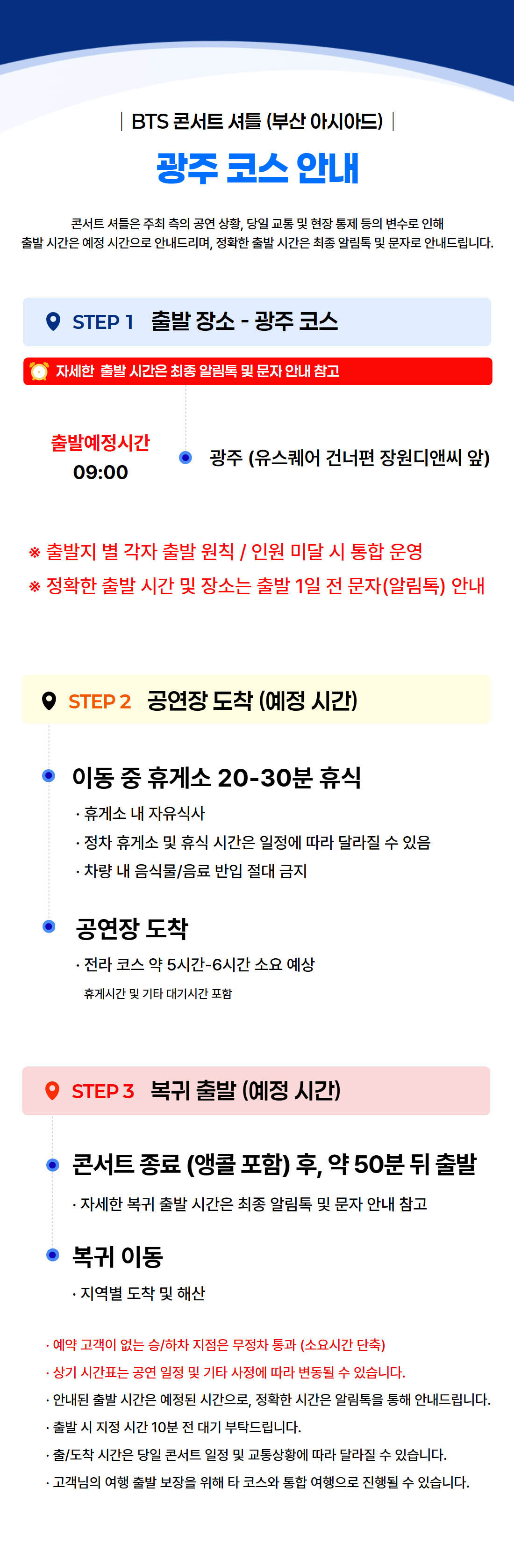 ※ 출발시간 5분전 대기해 주세요.